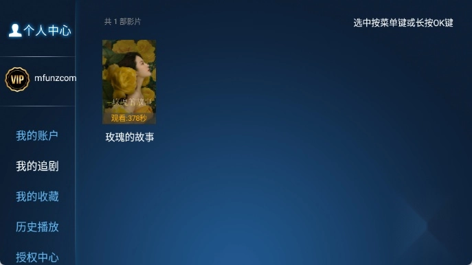 个人中心里能查看我的追剧列表、收藏内容、历史播放记录以及授权中心等功能入口。