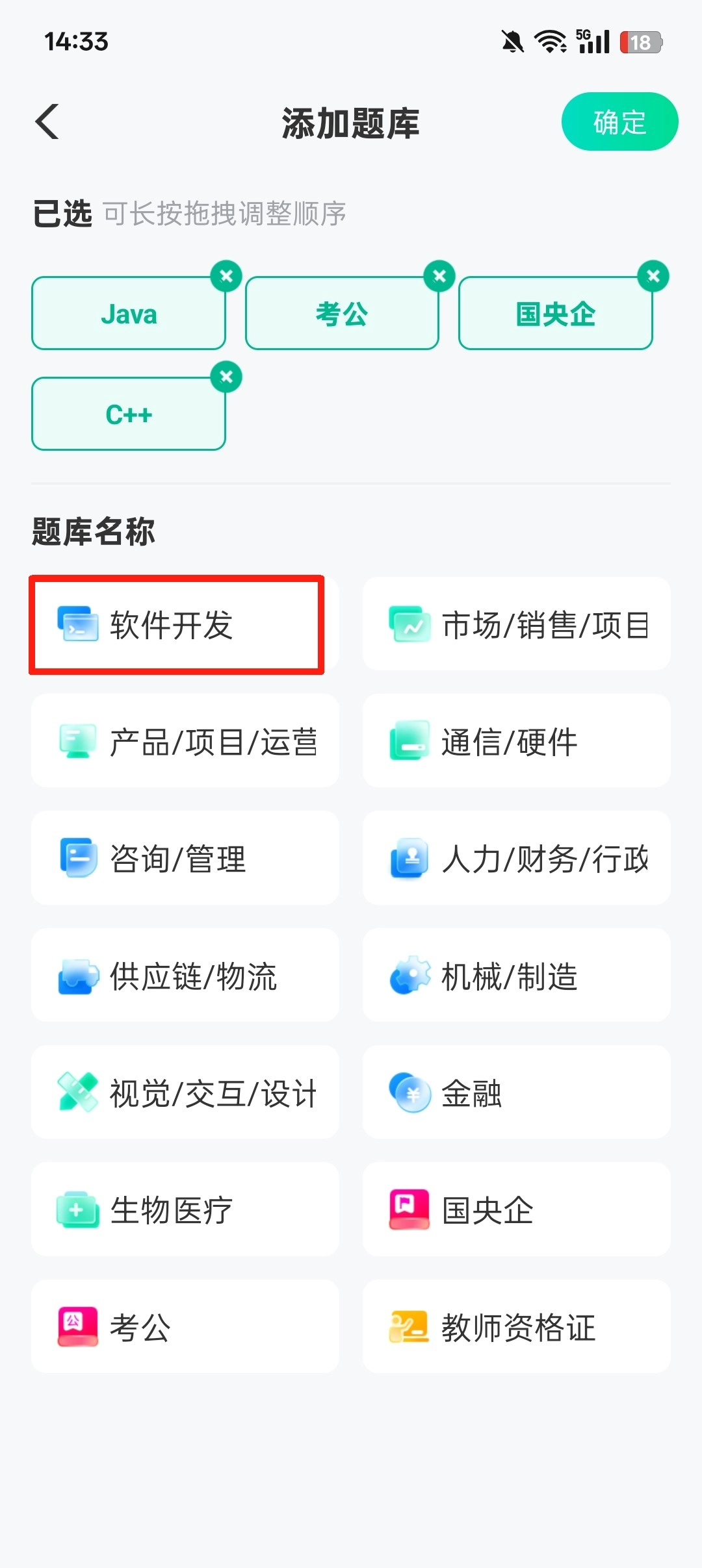 点击添加想要刷的题库