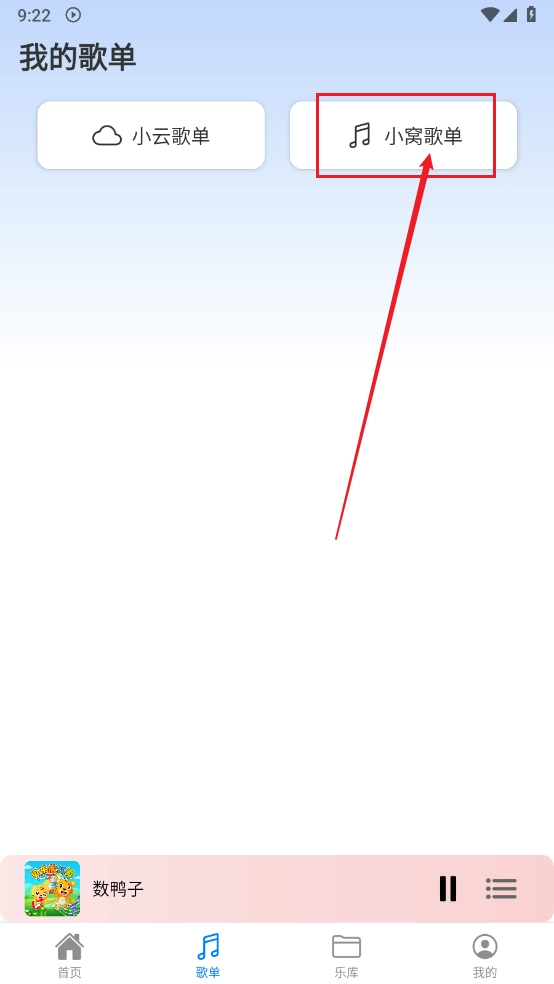 如图,点击"小窝歌单"进入。