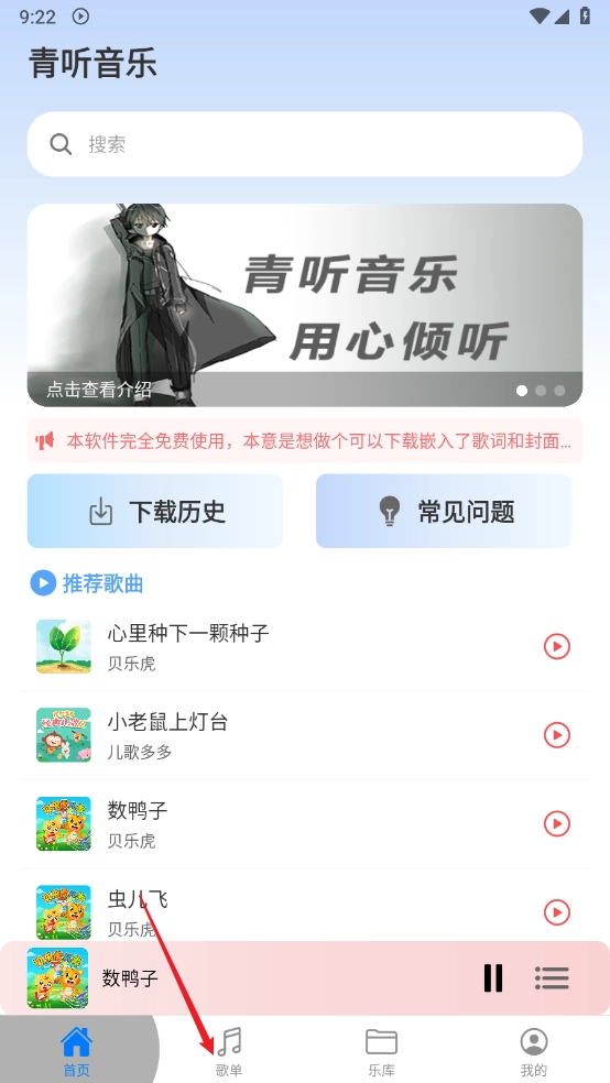 青听音乐,一款完全免费的听歌软件,不仅拥有海量正版音乐资源,还借助智能算法和个性化推荐,为你打造专属的音乐空间。无论是轻音乐、摇滚、儿歌等各类曲风,都能精准搜索到,而且随时可以一键输入关键字查找喜欢的歌曲哦!