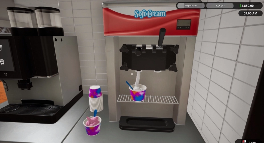 操作饮料机、烤架、炸锅等厨房设备,制作各类快餐食品,还能解锁新食谱。