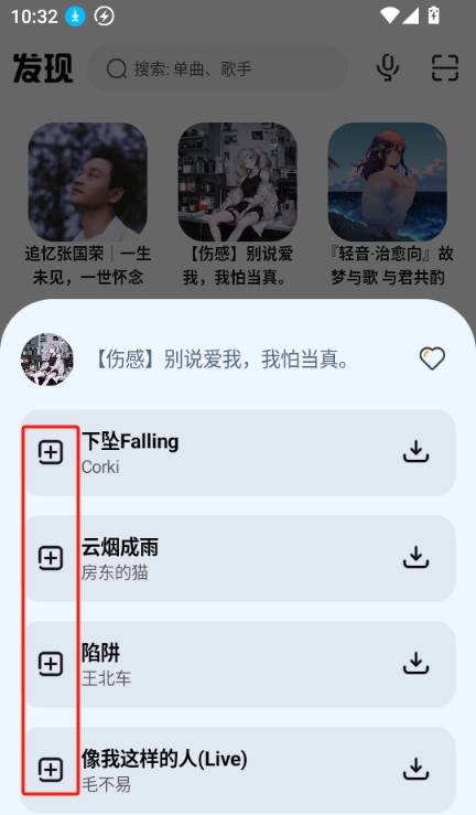 直接点击歌曲左侧的+号,就能将歌曲添加至歌单或者播放列表。