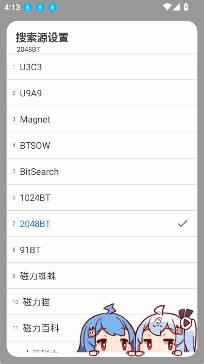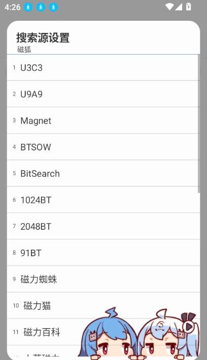 点击搜索框左侧的文字,即可进行搜索源的选择,其中包含21个搜索源。