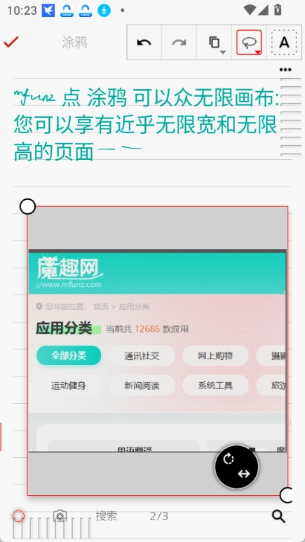 几乎无限大的画布,可以自由扩展笔记页面。