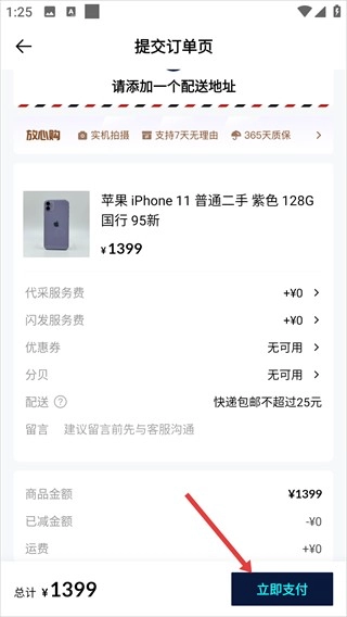 点击底部的“立即购买”按钮,进入提交订单页面。
