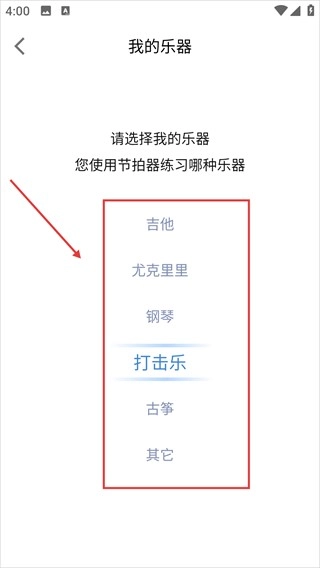 在个人主页里,点击“我的乐器”这个选项,就能进入到乐器选择的界面。