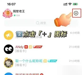 当程序启动并进入主界面后,轻点界面右上角的“+”号图标。