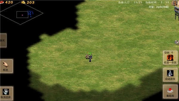进入游戏后,既可以单独选中农民,也能点击框选按钮来选择一定范围内的农民。
