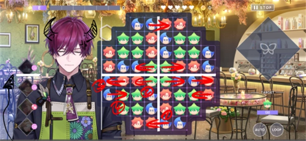 由于本关卡谱面存在特殊性,玩家无法直接达成消除目标,常规的消除顺序如下: