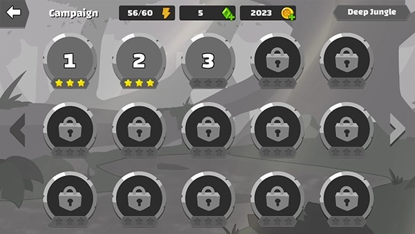 2、点击中间的闯关模式后,根据自己的进度选择关卡开始冒险。