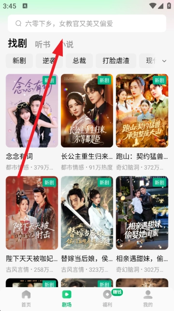点击这里就能搜索你喜欢的短剧,还可以直接挑选心仪的剧集开始观看。