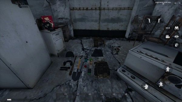 玩家进入游戏后会出生在一个封闭的集装箱里,滑动屏幕左侧就能控制角色移动,建议先把集装箱内的物品捡起来,这些物品可以用于基础的防身和生存。
