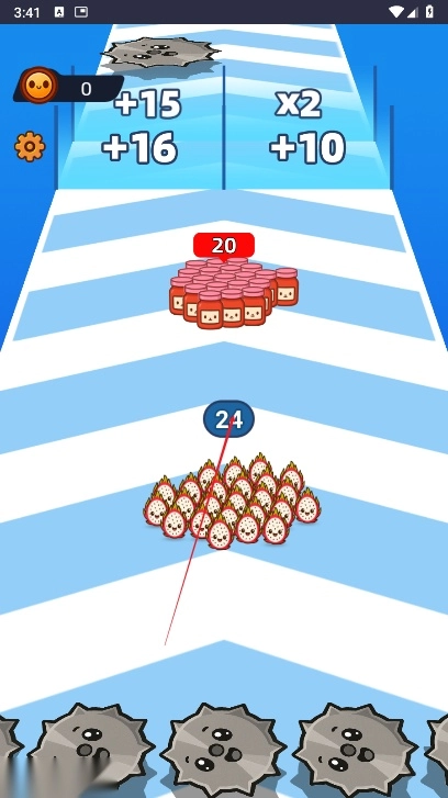 数量比拼的策略:对抗敌人时,数量是关键因素。玩家需要依据己方当前人数和敌人规模,来判断是否正面交锋。是先借助加成门扩充队伍再挑战敌人,还是选择冒险突破,不同的策略选择直接关系到能否顺利推进。
