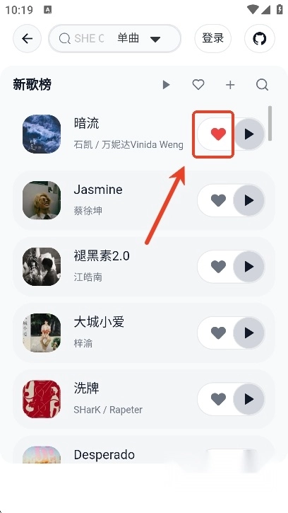 用户们也可以点击爱心收藏自己喜欢的歌曲