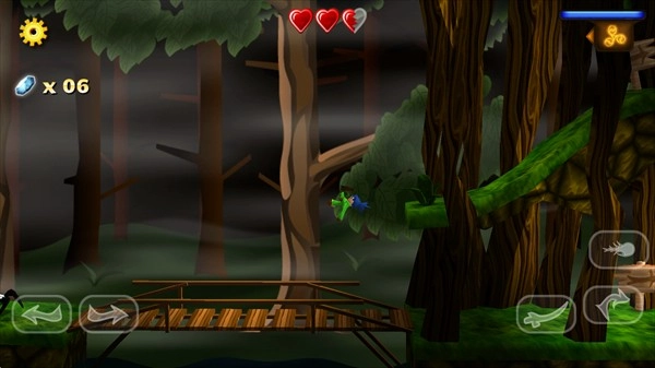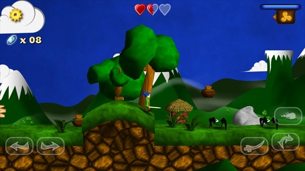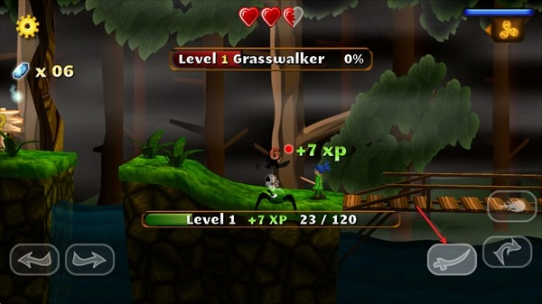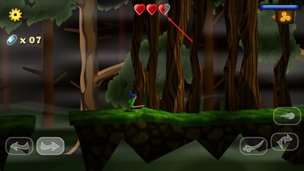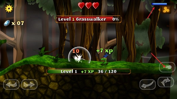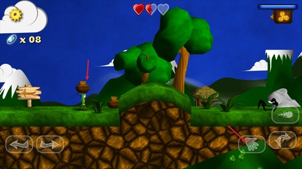 按照地图指引,我们随即进入关卡。左侧箭头负责控制移动方向,右侧箭头则用来操控跳跃动作,长按右侧箭头还能让角色跳得更高。