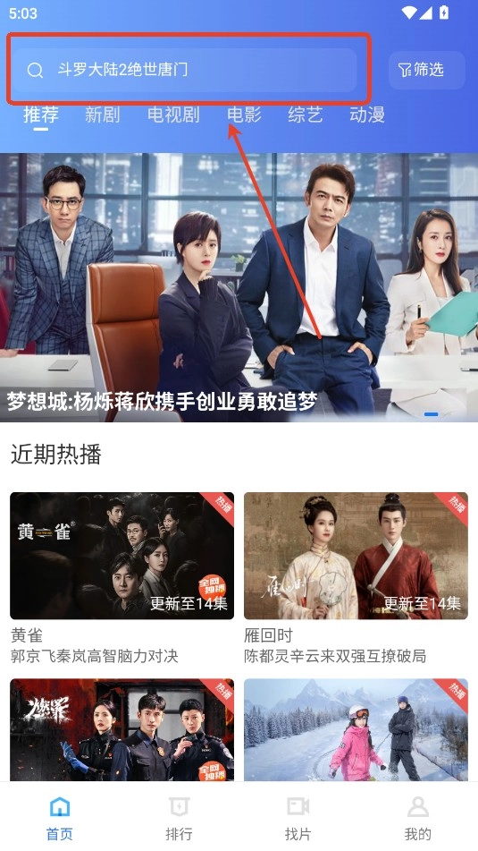 要是你有特定想看的剧集或电影,可点击顶部的搜索框,输入关键词就能找到你需要的视频。