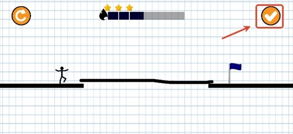 玩家完成绘制后,点击屏幕右上角的对钩图标,火柴人就会开始行动。