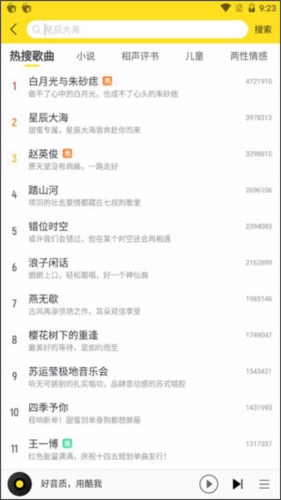 酷我音乐的搜索功能拥有极为强大的音频资源支持,涵盖热门歌曲的铃声版本、有声读物等各类内容。
