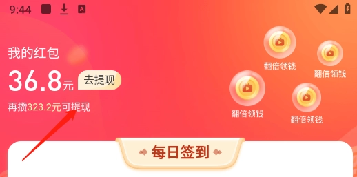可以通过每日签到获取,点击下方的“提现”按钮就能完成签到。