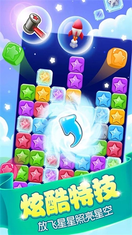 然后依据游戏里的星星,找出两个或者更多颜色相同的方块,以此消除它们。