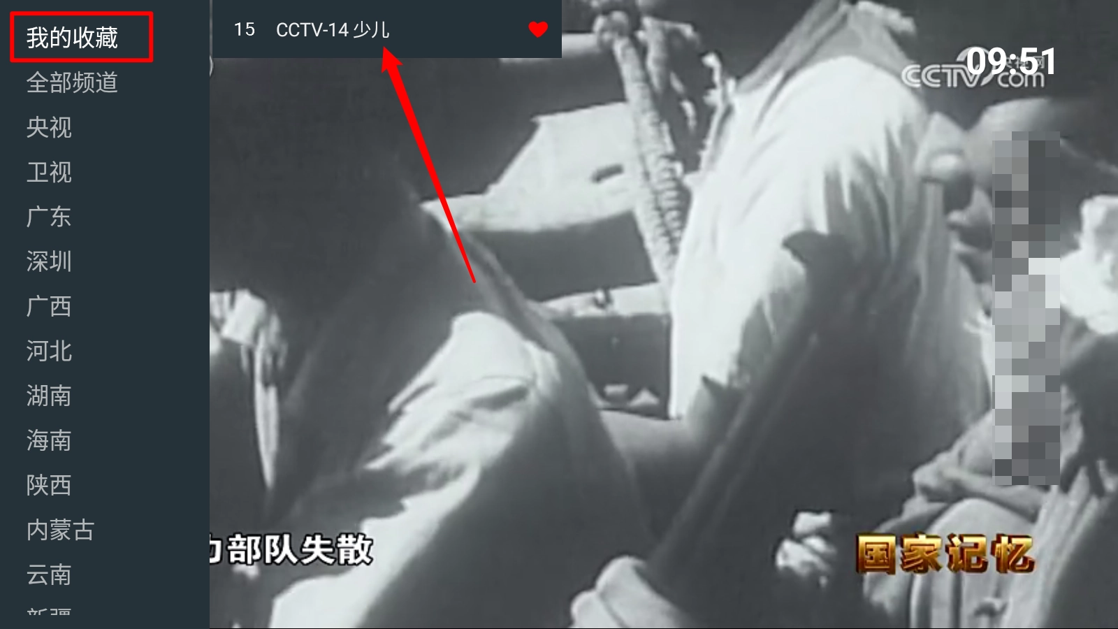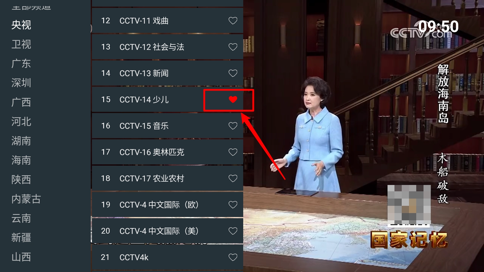 然后选择所需收藏的频道点亮小爱心。