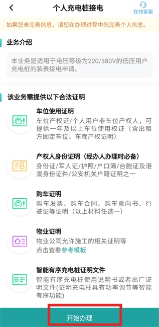 请填写详细地址、申请容量(例如7kW/11kW),并勾选同意业务办理须知。
