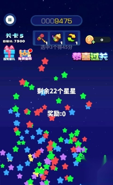 游戏的核心规则是两连消,只要有两个颜色相同的星星方块连在一起就能消除。除此之外,玩家还能尝试多连消玩法——一次性消除多个相邻的星星方块,以此来获取更丰厚的得分。