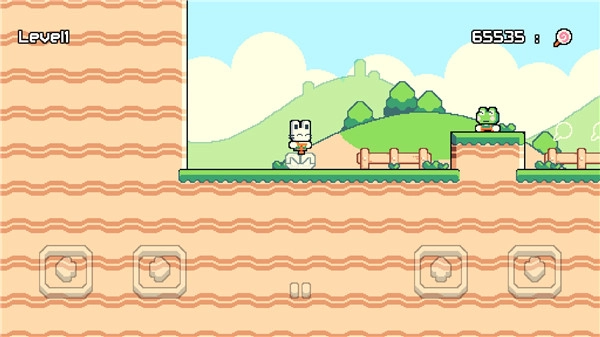 操作方式采用简洁的双按钮设计,左手负责操控兔子的前进与后退动作,右手则掌管兔子的跳跃和下蹲行为。