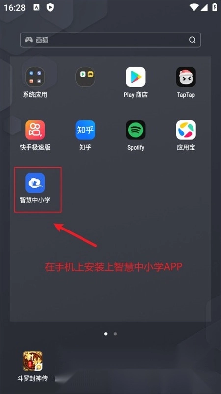 安装结束后,回到设备主屏幕,找到“智慧中小学”的图标,点击该图标即可启动应用。