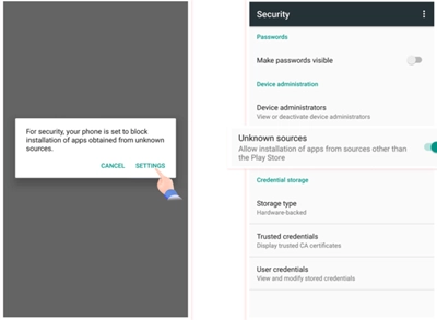 开启“未知来源”权限,该权限可用于安装非GooglePlay渠道的应用。