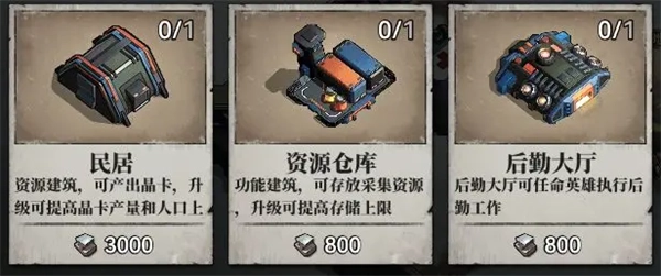 用于建造和升级主基地内外各类建筑
