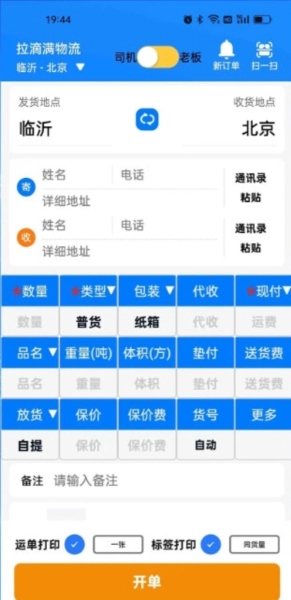 在开单页面,就能编辑发货地与收货地,进而发布货源信息。