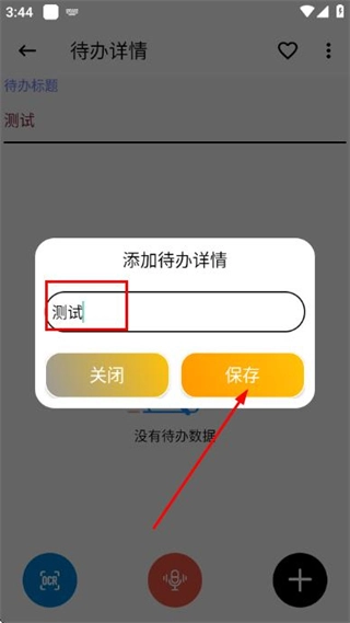 在输入框里填写好待办事项的内容,接着点击保存按钮,这样就能完成添加该待办事项的操作了。