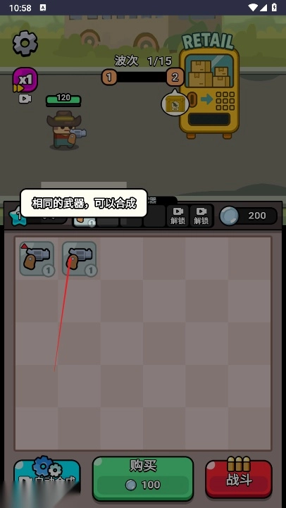在零售机购买武器后,相同星级的武器能够合成更高级的武器!