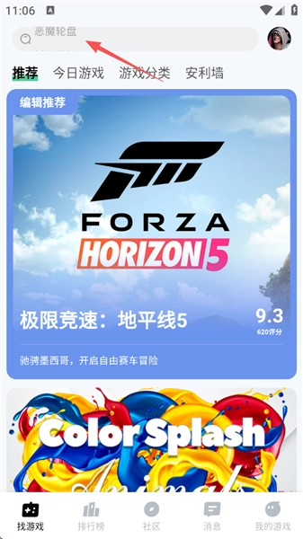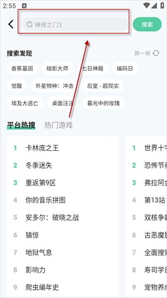 在首页顶部搜索框输入关键词,精准查找目标游戏。