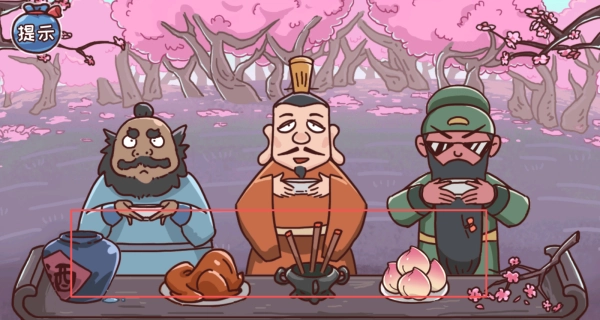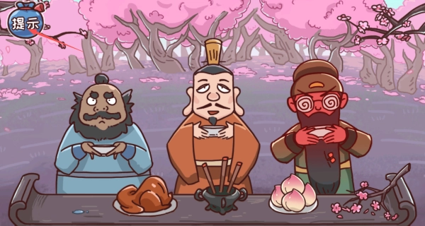 画面十分有趣,能看到刘备在桃园中愁眉不展,原来是要结拜却找不到桃树,满屏都是无厘头的道具,打算用奇思妙想帮他解决这个难题。