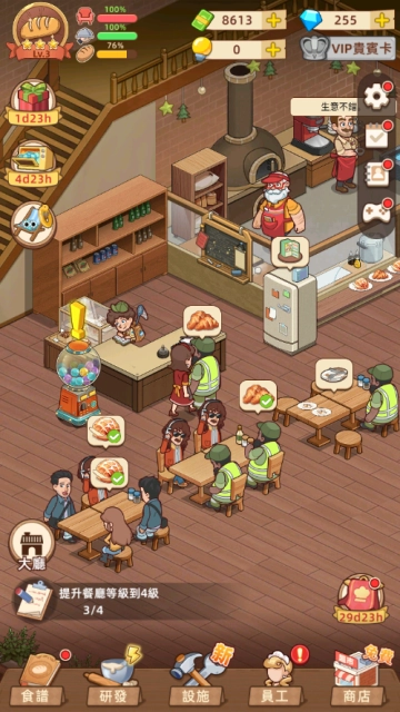 2.个性化店铺打造:玩家能够对自己的时尚面包店进行设计与拓展,运用独特的地板、墙纸及家具来构建富有个人特色的空间,让它成为当地备受青睐的社交聚集地。