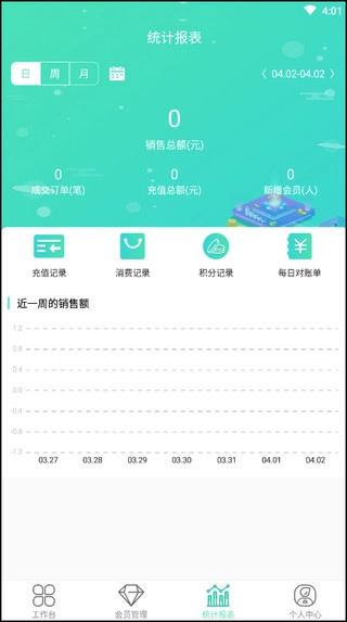统计报表功能支持按日、周、月维度查看营收、会员消费、积分变动等数据,并以可视化方式呈现,助力商户直观掌握经营状况。